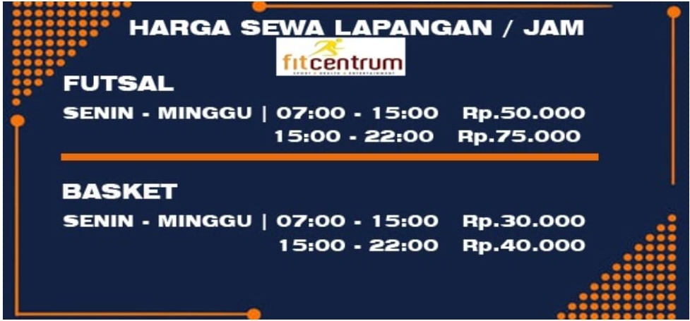 • Waktu sewa lapangan sore pukul 15:00 – 21:00